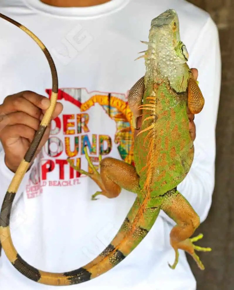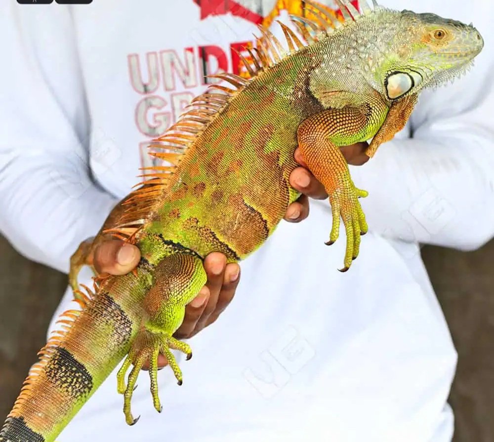 These iguanas thrive in warm, humid environments that mimic their natural tropical habitats. A spacious, well-designed enclosure with UVB lighting, climbing branches, and basking areas will keep your iguana healthy and active. With a diet rich in leafy greens, vegetables, and occasional fruits, they grow strong and develop their full potential in both size and color.